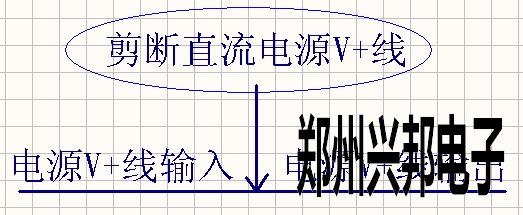 將一根直流電V+線剪斷,一側(cè)為直流電V+的輸入,另一側(cè)為直流電V+的輸出;如下圖1-3所示