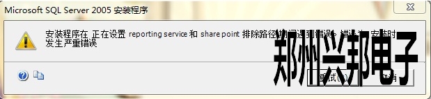 我們公司最新消費機的刷卡消費和數據采集,都是通過can軟件來控制和顯示的,采集的信息都通過can軟件設置存在數據庫2005中,所以安裝can軟件,首先要安裝數據庫2005,但在安裝數據庫2005時,安裝程序可能會在正在設置reporting和shre point 排除路徑 期間遇到錯誤,遇到的錯誤如圖所示:
