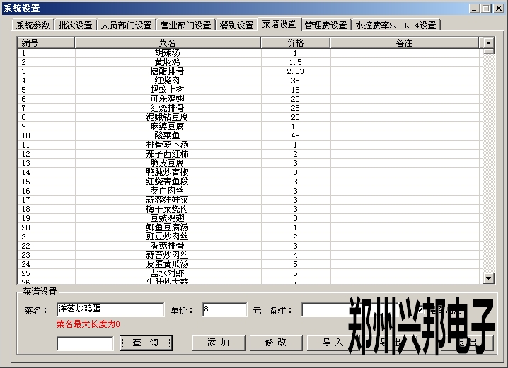 添加菜單時,輸入菜名、單價、備注(可填可不填)、選擇是否啟用,然后點(diǎn)擊添加即可。添加后可修改、導(dǎo)入、導(dǎo)出菜名、單價等信息,最多可添加2000個菜單,菜單添加后不能刪除,可以選擇是否啟用。菜名最大為8個漢字,可以為漢字、數(shù)字、字母或者特殊字符。