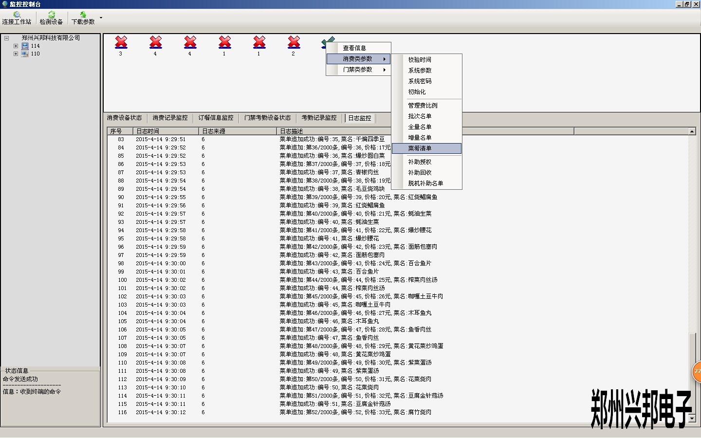 2.菜單添加完成后,需要將菜單通過下載參數(shù)的方法下載到消費(fèi)機(jī)中,下載時需要將機(jī)器和軟件連通,下載方法如下圖所示: