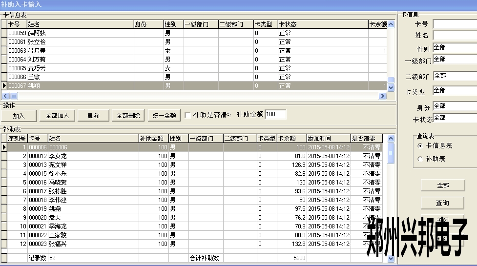 在卡管理--補(bǔ)助入卡--補(bǔ)助入卡輸入里面查詢。下面的補(bǔ)助表里的人都是現(xiàn)在還沒(méi)有領(lǐng)取補(bǔ)助的人員名單