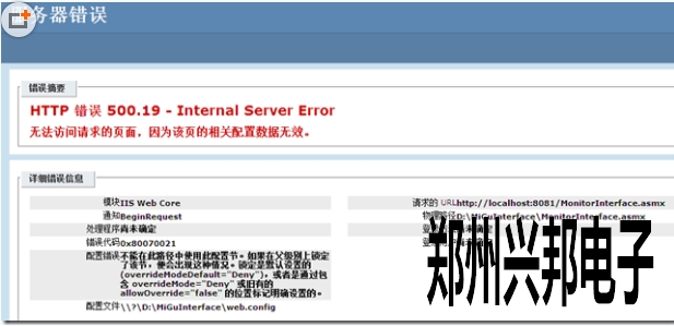 校園一卡通軟件在WIN7操作系統安裝后,創建IIS瀏覽的時候出現了“HTTP 錯誤 500.19 - Internal Server Error ”錯誤,如下圖: